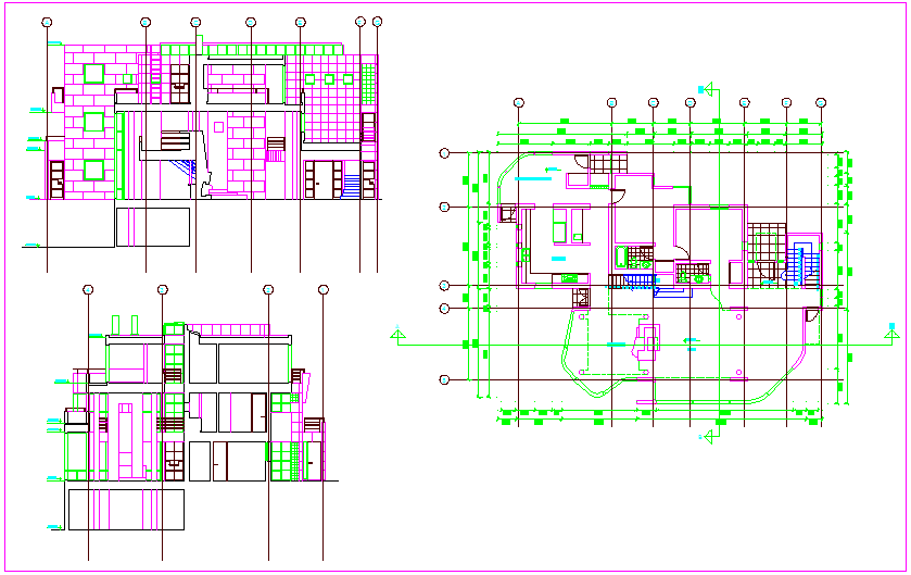 House design view with plan and elevation view dwg file