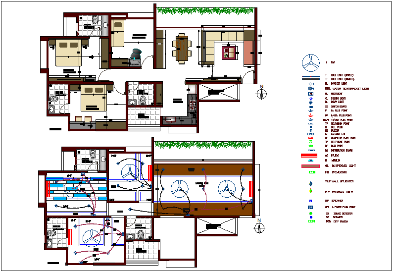 Electrical view with electrical legend of house design with house plan dwg file