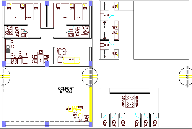 Maternity and child care clinic architecture layout that includes a detailed view of main entry door, reception area, sitting area, waiting area, consultant room, doctors room, nurses room, cleaning department, child care department, toilets and bathroom and much more of clinic design.