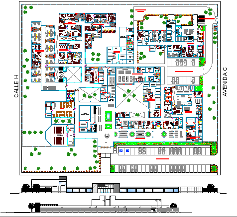 Multi-flooring hospital architecture project dwg file.
