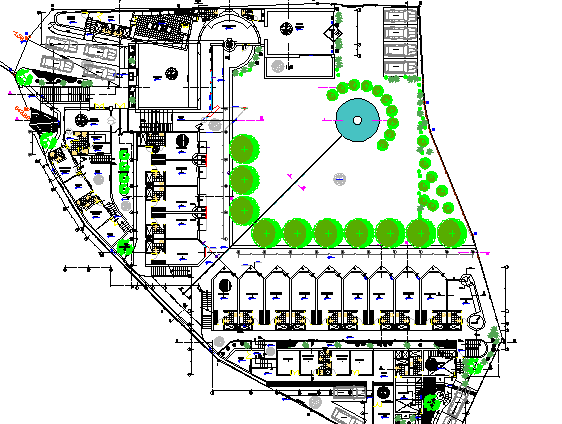 Tourist hotel site plan and landscaping details dwg file