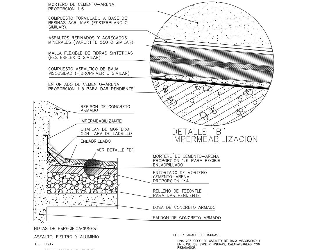 composite formulated base on acrylic resins ( festerblanc or similar) filling of tezontle to give pending with section plan of waterproofing stuffed of roofs plan.