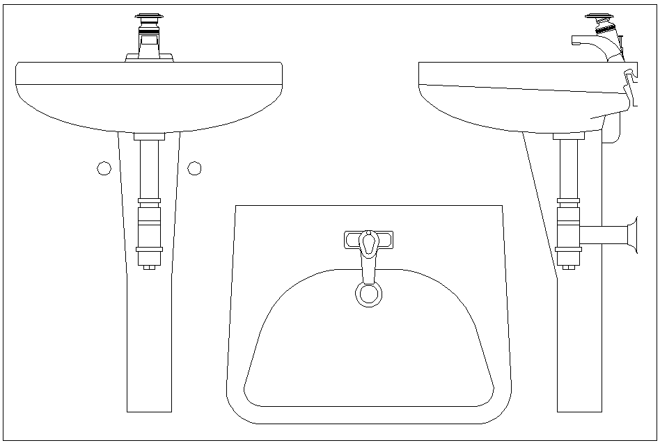 Wash basin block dwg file, washbasin elevation plan section view, wash basin block