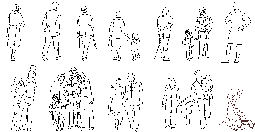 Common standing people block dwg file. Common standing people block that includes different type of people in standing position.