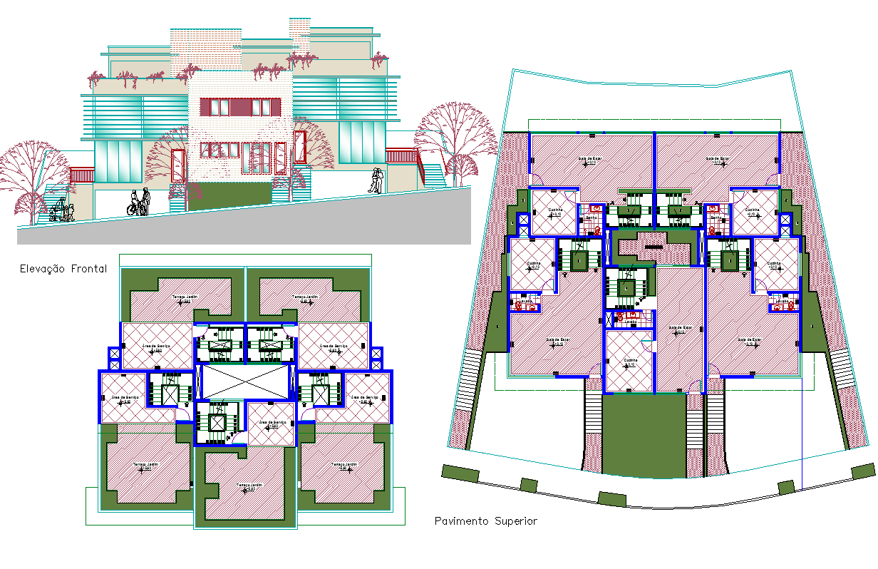 the architecture layout plan, site plan, structure view and modern landscaping design of Multifamily Residence Project.
