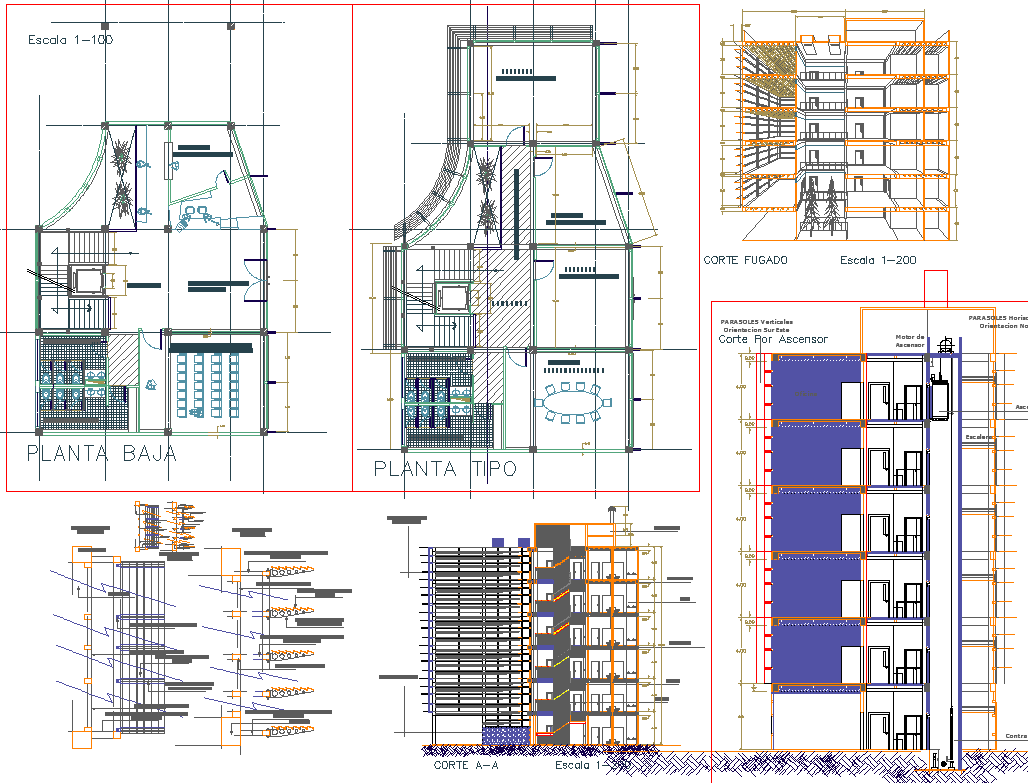 the architecture layout plan, structure plan, construction plan, section plan and elevation design of Office Building Project autocad file.