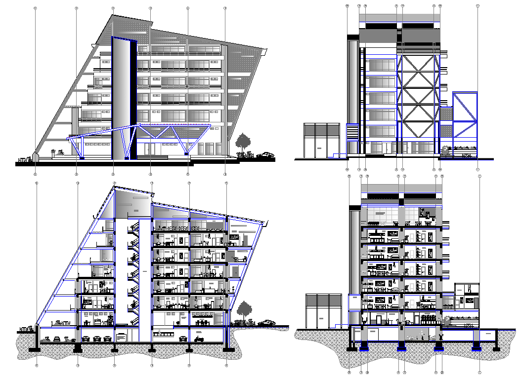 Elevation design and section plan of Apartment dwg file. the architecture elevation design and section plan of apartment project detail dwg file.