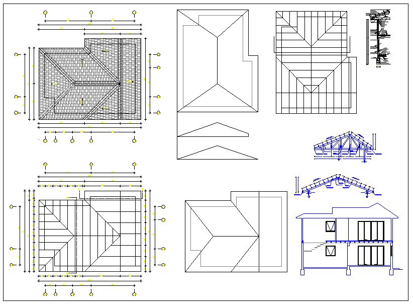 Roof detail of residential house dwg file, Roof detail of residential house and plan layout, roof plan design layout, elevation view and section view
