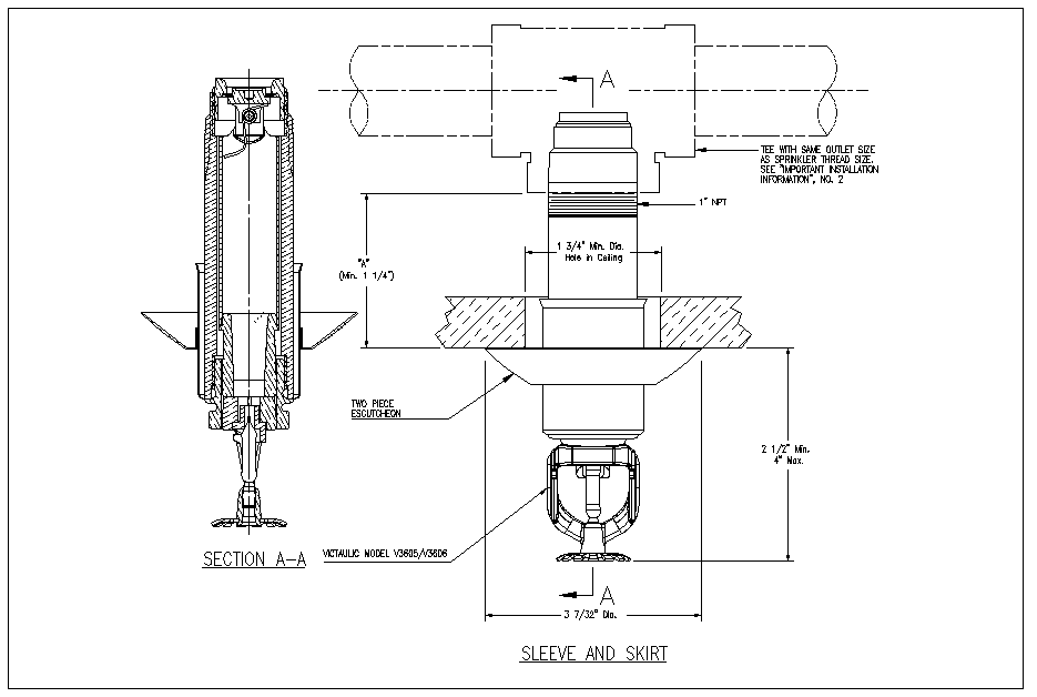 Water sprayer and sprinkler device dwg file, sprinkler sprayer plan and elevation view, section view with naming denotation information, mechanical part