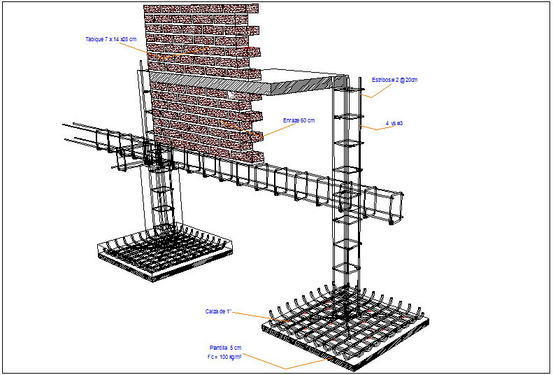 Isometric view of structural design of shoe wall dwg file in isometric view with partition view with wall and column and beam structural view in isometric view with