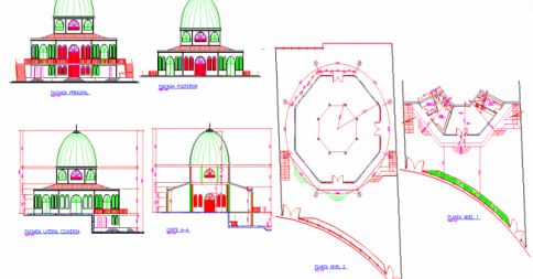Mosque AutoCAD DWG Layout Plan with Elevations and Sectional Details