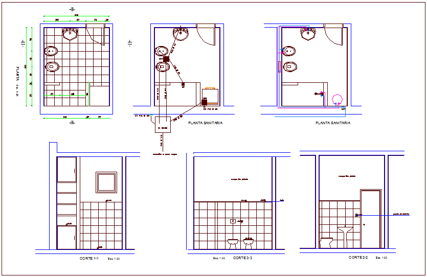 Bathroom design with sectional view dwg file in plan view with floor view of tiles