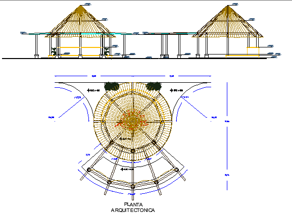 Village old style roof house architecture project that includes front faced elevation, back elevation and architecture structure, column and beam details, roof design and much more of house plan.