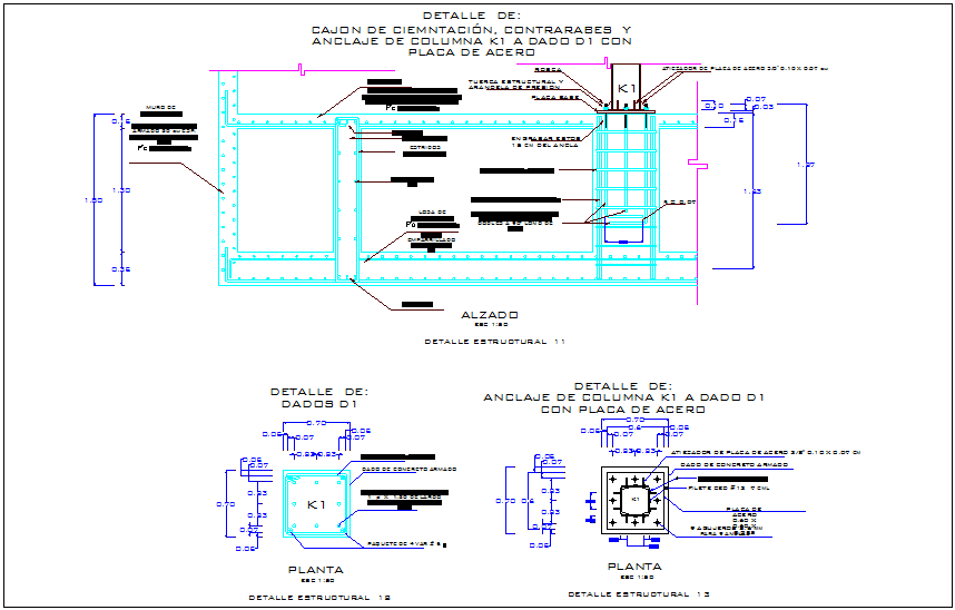 Column view with structural detail dwg file with plan view with column view and its detail and necessary dimension.