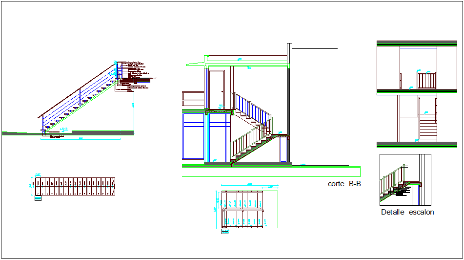 Construction view of stair with necessary detail dwg file in elevation view of stair with