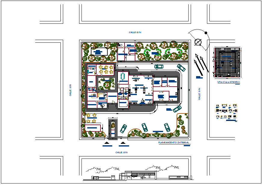 Bungalow plan layout view detail dwg file, bungalow plan layout view detail information, bungalow elevation and side elevation view detail view, plan view of bungalow top view detail, kitchen, living room, garden area, parking area, washing area etc, different machinery detail and it view etc