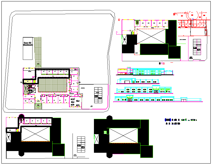 Office building property plan layout detail dwg file, Office building plan layout detail with plan design view detail information, elevation and side elevation view of the building, parking, office departmental room, lobby, Elevation view detail of door and windows etc