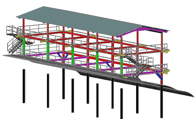 Mobile camp 3d structure dwg file. Mobile camp 3d structure that includes roof view, beam view, staircase view, column view and much more of mobile camp details.