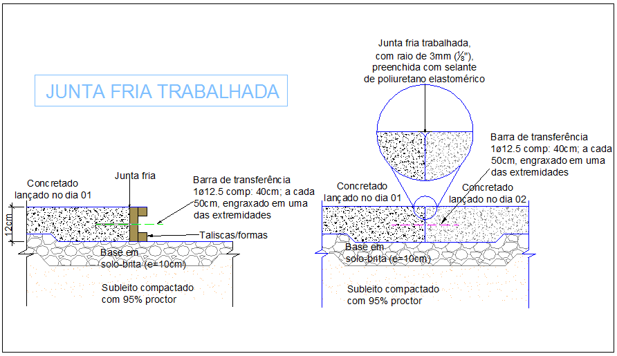 base,concrete view and forms view, Elastoplast polyurethane layer and concrete view in elevation.