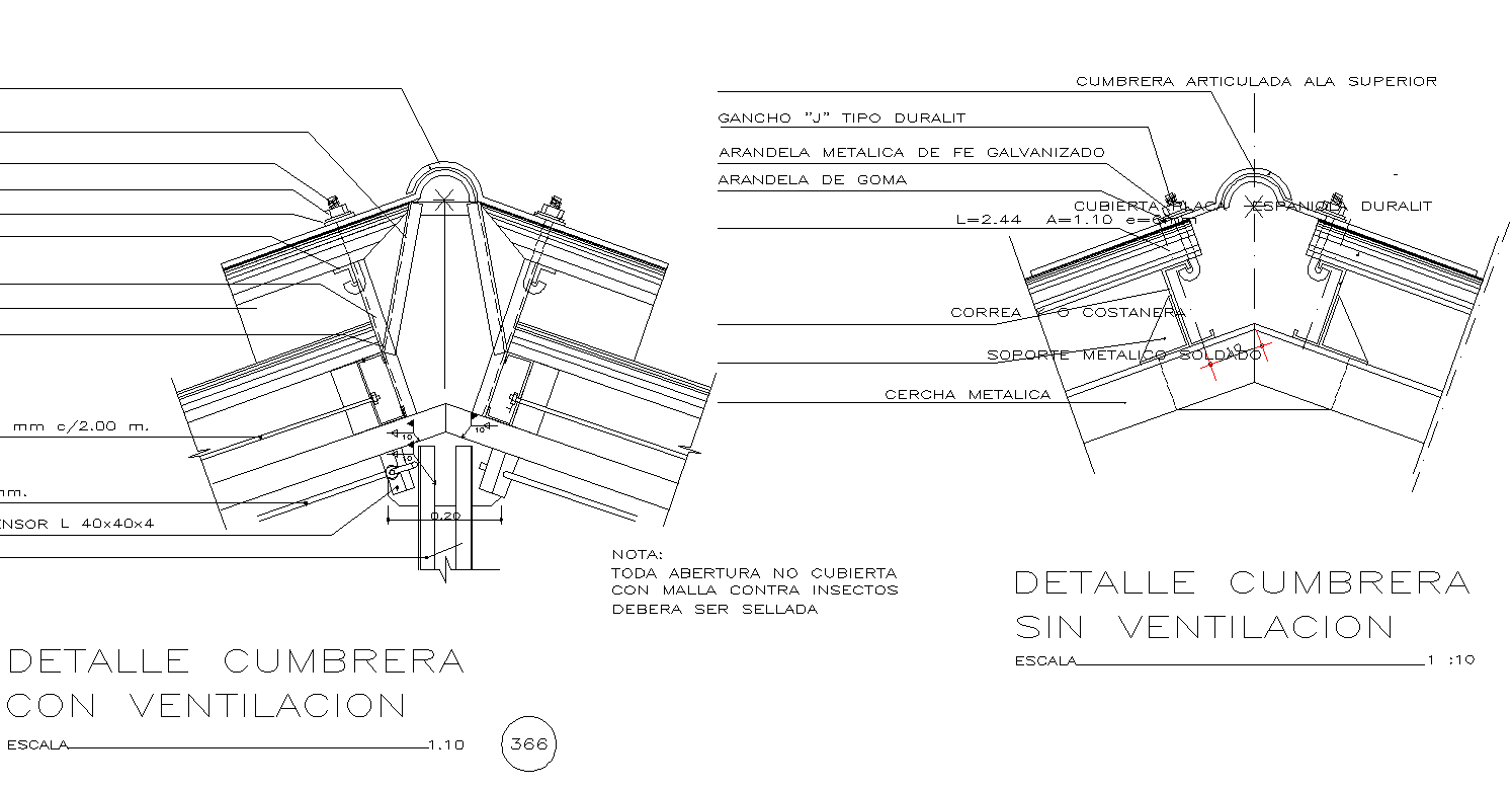 Detalle Cumbrera Panel Sandwich dwg file. find here section plan and description detailing of roof ridge sheet with the metal and much more detailing.