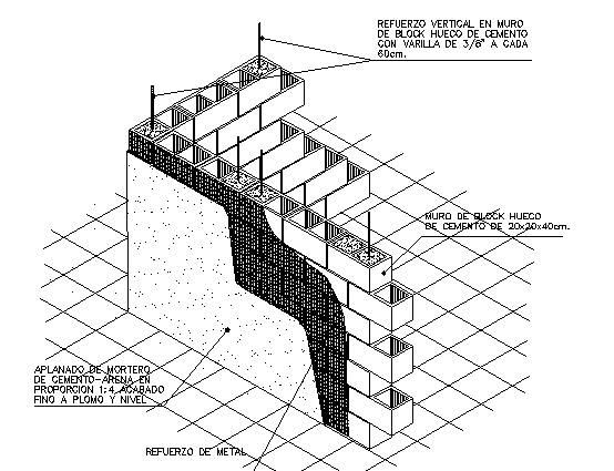 Wall construction details of building dwg file