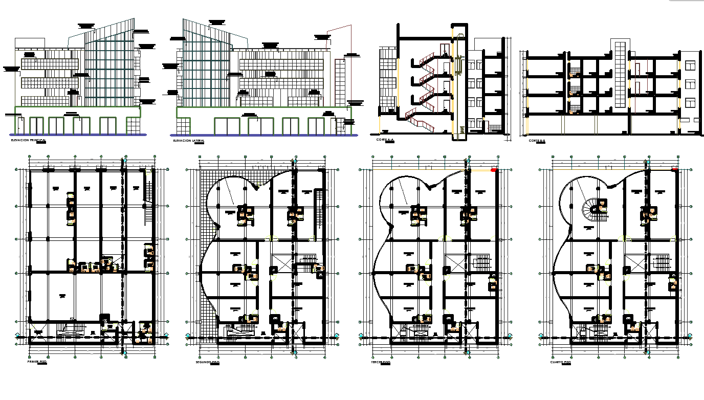 the architecture layout plan of all floor with all construction detail, section plan and elevation design of corporate building project