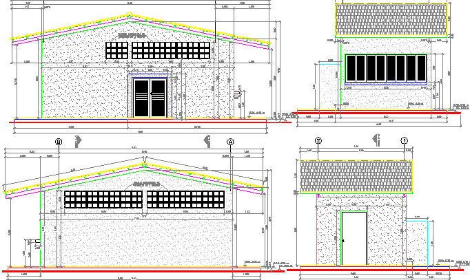 Food unit handler design and elevation that includes front elevation, back elevation, cuts, doors and windows view, roof view and much more of food unit elevation.