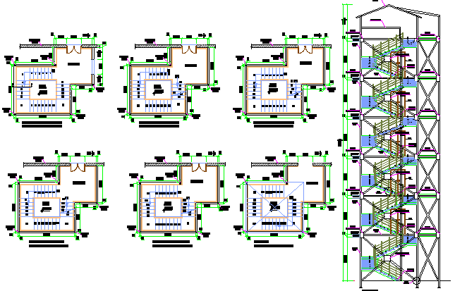 Emergency exit staircase details of building that includes staircase elevation view floor vise, roof plan, floor vise plan, riser trade tube, parapet wall, landing, building wall, welded plate, stair details and much more of staircase view.