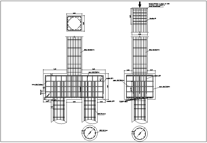 Construction view of pilling detail dwg file in elevation view with construction view of pilling with necessary dimension view.