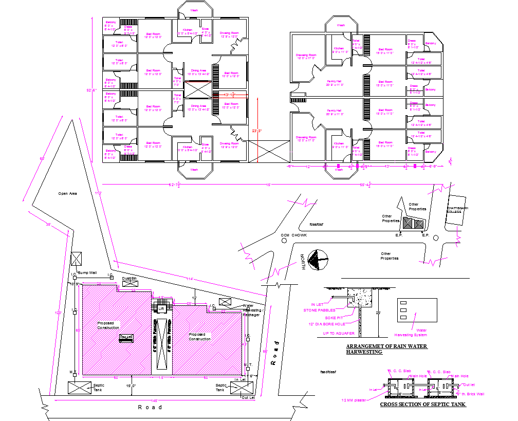find here the architecture layout plan of 2 blocks, arrange the rainwater tank storage, roof plan and much more detailing in autocad format.