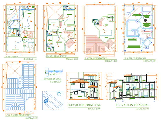 Country House 2D CAD Drawing with Floor Plan Elevation and Section