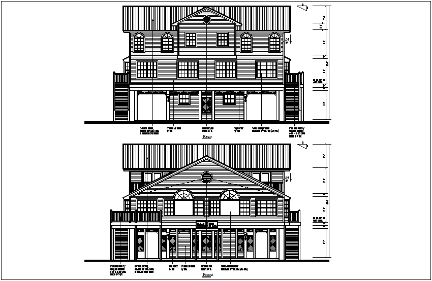 Bungalows rear and front view dwg file in rear view designer door and window with main entrance,stair,support and wall view and front view with main entrance and floor