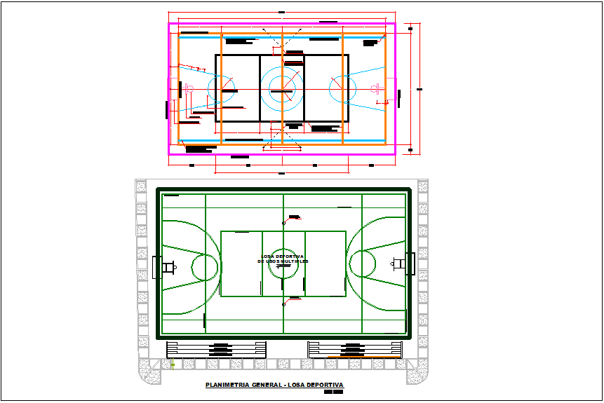Basket ball court plan view details dwg file