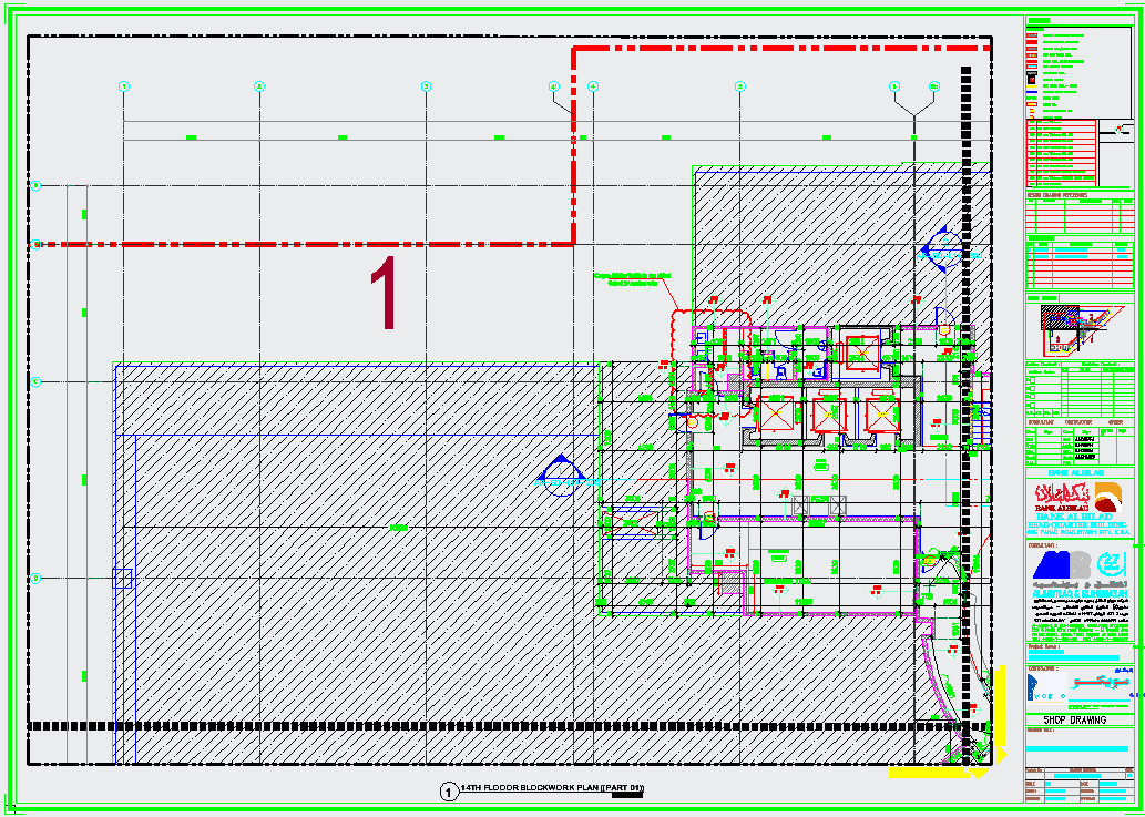 14th Floor Block Work Plan dwg file. the architecture layout plan 14th Floor Block Work plan, and structure plan along with much more detailing in cad file.