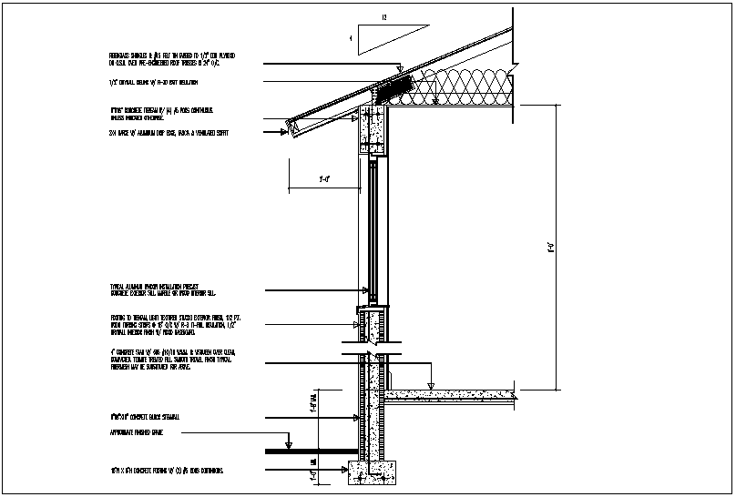 Structural view with footing and tie beam dwg file in elevation view with dry wall and