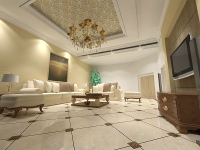 This 3D drawing room interior design DWG file presents a premium residential living area crafted for elegance and comfort. The design includes detailed wall elevations, ceiling patterns, lighting fixtures, and furniture placement layouts to help architects and interior designers visualize spatial flow and functionality. The CAD drawing also features a luxurious false ceiling design with chandelier placement, accurate furniture measurements, and floor tile detailing for an aesthetic finish.