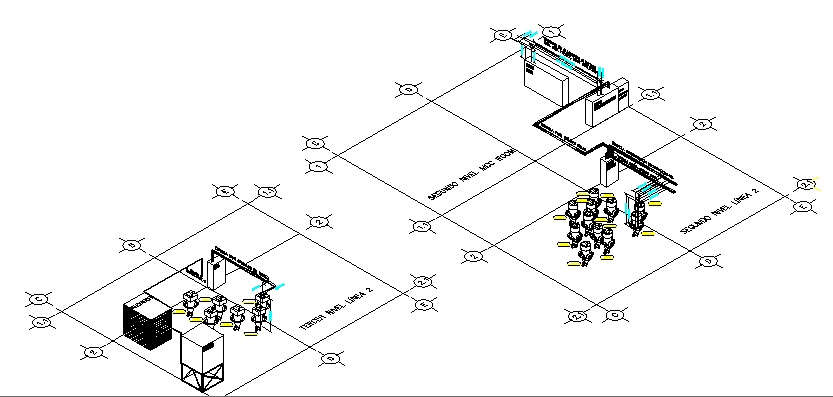 Isometric view of Industrial plan machinery details that includes detailed view of main line, barrel electric details, machinery electric installation details, material lift, side feeders and much more of industrial plant details.