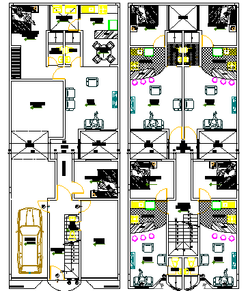 Floor plan details of multi-flooring housing apartment dwg file .
