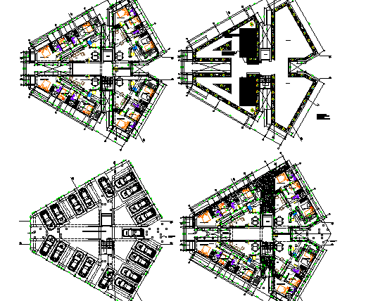 Floor plan layout details of multi-flooring housing building that includes a detailed view of ground floor, first floor, second floor, top floor, with main entry door, hall, kitchen, dining area, family room, bedroom, wash area, toilets and bathroom and much more of housing floor layout.