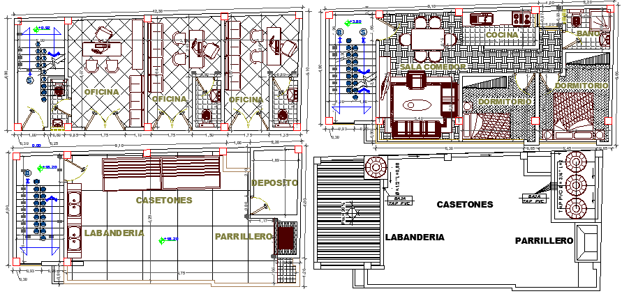 Ground and first floor plan layout of multi flooring housing building dwg file.