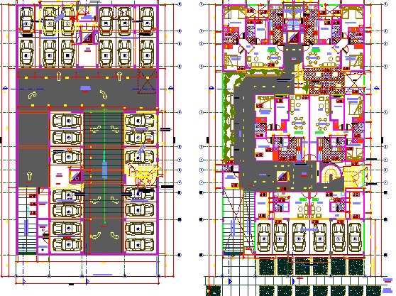 Basement parking and structure layout of multi-flooring housing flats dwg file..