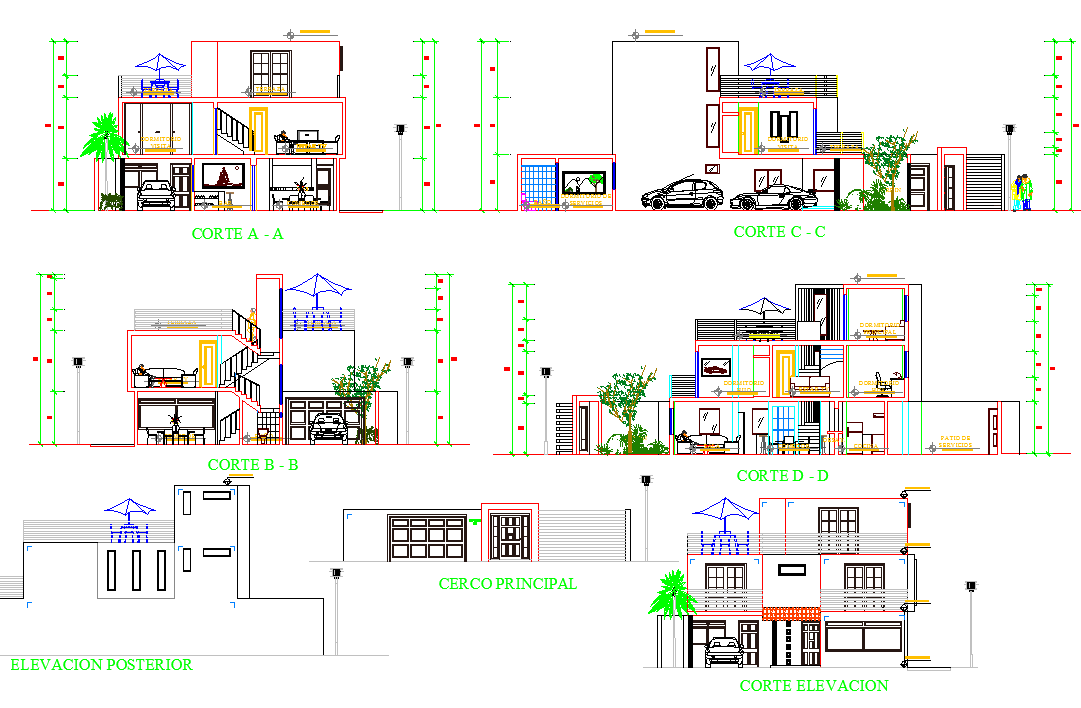 Modern House Plan dwg file. the architecture section plan and elevation design along with furniture plan and much more detailing.