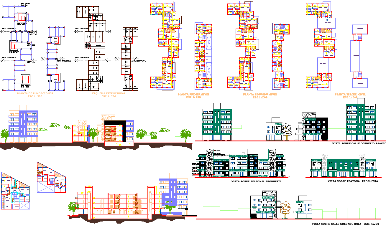 Hospital Project detail view dwg. the architecture layout of all floor detail along with furniture plan, section plan, elevation design and landscaping design.