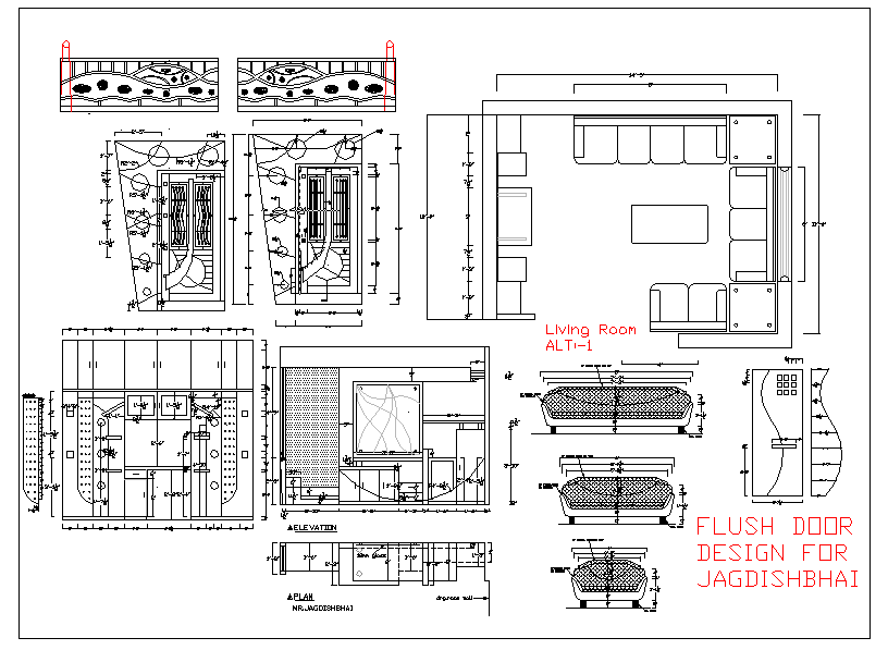 Residential house plan and design plan of layout details view dwg file, Residential house plan and design plan of layout details view main room in details and elevation and kitchen details and elevation , sofa details