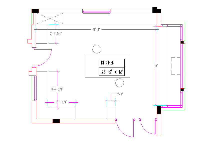 Residential kitchen plan layout with detail dimension dwg file, Residential kitchen plan layout with detail dimension with door opening space plan view .