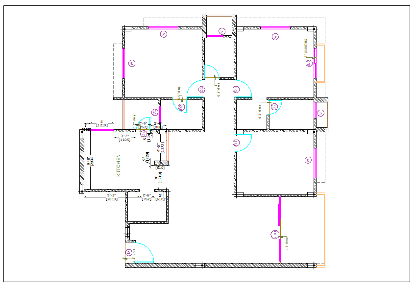 Residential housing plan and kitchen layout with dimension dwg file, Residential housing plan and kitchen layout with dimension with opening space plan view