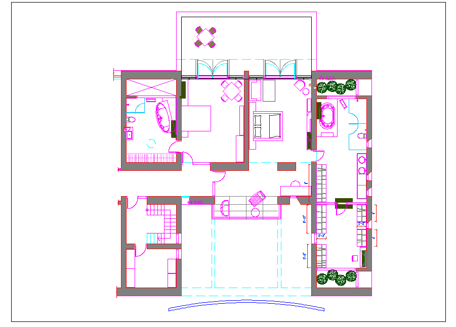 Residential housing plan view dwg file, Residential housing plan view and design plan layout of interior furniture view, door opening area