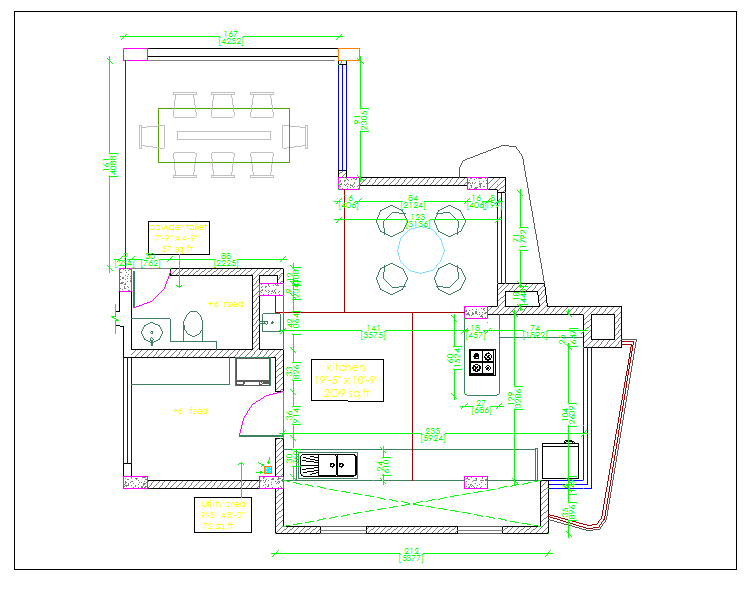 Residential kitchen plan view and furniture with dimension detail dwg file, Residential kitchen plan view and store room view, dining hall view , furniture with dimension detail