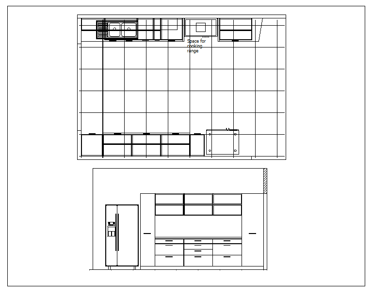 Residential kitchen plan view and elevation view dwg file, Residential kitchen plan view and elevation view with furniture elevation,chimney view, platform view