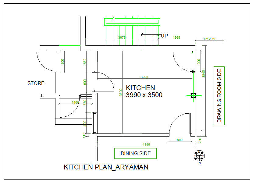 Kitchen plan view design with dimension detail dwg file, Kitchen plan view design with dimension detail, door opening area